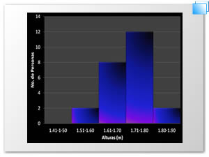 Se realizaron los histogramas para las estaturas, encontrando que en la población general el pico de éste se observa en el rango de 1.61-1.70m (Gráfico 3). La estatura promedio grupal es de 1.66m, entrando en el rango de valores que más se repiten en esta población, con 17 personas de un total de 42.