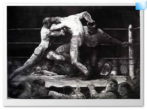 35. George Belows, Dempsey and Firpo, aguafuerte, 1924.
