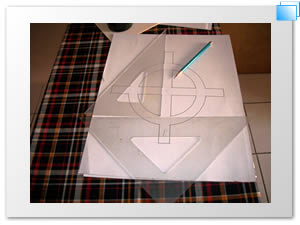 Paso 4.- Se colocan trozos de masking tape en las esquinas de la plantilla (calado) para evitar algún movimiento que dañe el proceso de reproducción.