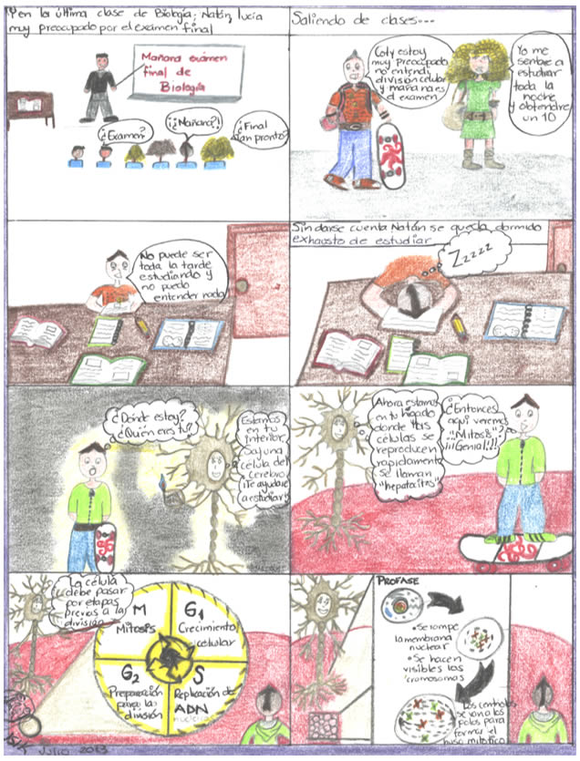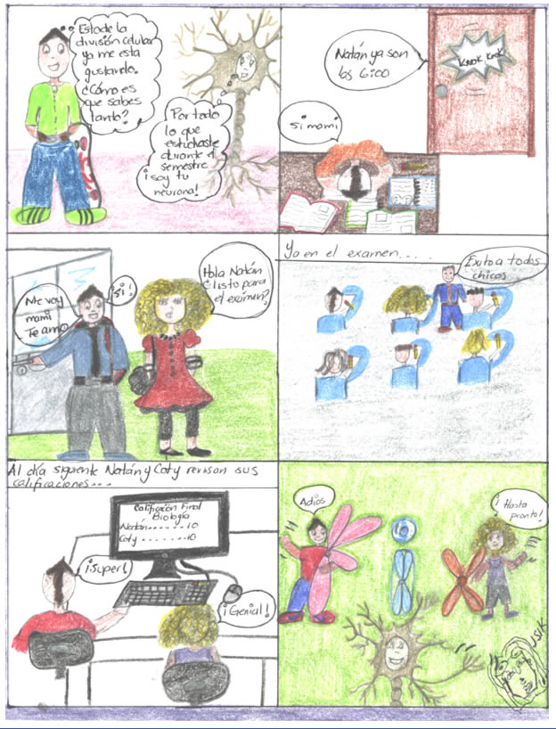 In the cellular´s metabolism, there is a process named cellular division, which becomes complex to understand because of the existance of two processes called up Mitosis and Meiosis. This is the reason to this work, wich pretends spreading an alternative to learn about cellular division, step by step, in an animated mode, hoping to benefit University´s high school community. Mitosis is the process where somatic cells, characterized for being diploid (they have a complete genetic code, with 46 chromosomes), get divided generting two similar cells; while sex cells (haploid), have only half genetic code to procreate human beings, self divide by Meiosis, generating four cels haploids.
