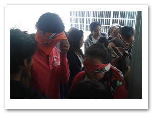 En la parte de afuera se les dan las indicaciones para llevar a cabo la actividad, se les pide que lo que vayan experimentando, traten de ir pensando que sensación les provoca, cada uno de los estímulos que reciban, para después, redactarlas en su libreta y poder establecer una conclusión de sus experiencias con el método de Introspección Analítica.