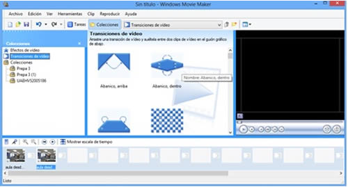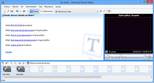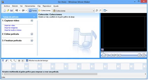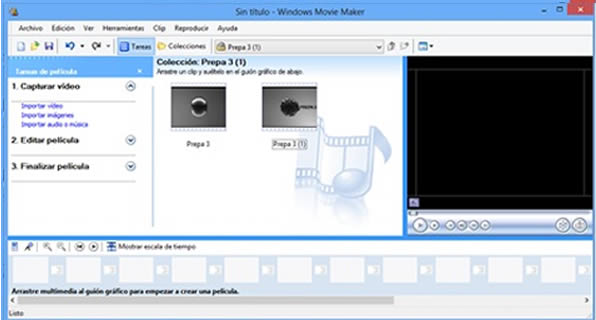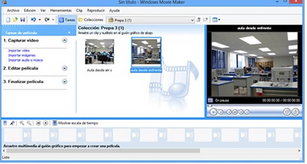 Línea de tiempo. Es el lugar en el que se trabaja con los elementos (vídeo, fotografías, música, etc.) para construir el vídeo final. Movie Maker nos permite ver el vídeo en el que trabajamos de dos formas distintas: