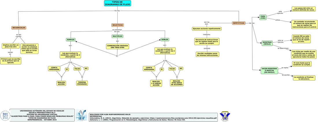 The following conceptual map of the unit represents II theme of the course Algorithms Computing IV, High School No. 3, of the types of algorithms that exist, concept , function and features thereof, in order to support students to land the theoretical foundation of unity presented. And so we can apply it in their practice phase.