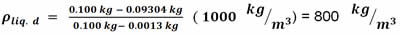 También podemos determinar la densidad de un líquido. Para ello, primero obtenemos la masa aparente ma de un cuerpo de masa mr sumergido en un líquido de densidad conocida (ρliq.c). La diferencia de masa (mr - ma) es igual a la masa del volumen de líquido desalojado, por lo tanto:
