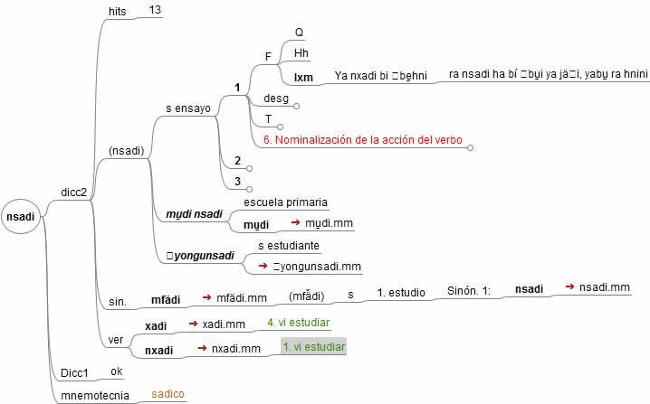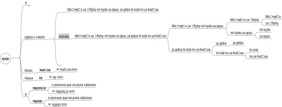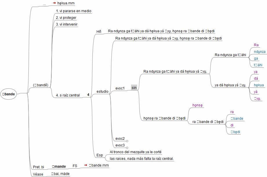 Figura 2. División binaria progresiva de una oración que ejemplifica el uso de una palabra hñähñu