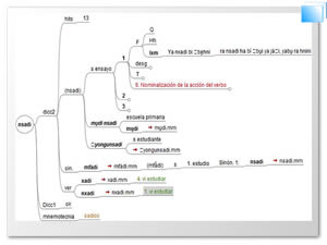 Se propone conjuntar diversas herramientas de las TIC para crear una plataforma para el estudio autónomo e inductivo de la lengua hñähñu, así como para la socialización de los hallazgos derivados, tomando como referencia la variante dialectal del Valle del Mezquital. Consta de los siguientes componentes: 1. Consolidados: 1.1. Técnica para la creación progresiva de un corpus léxico hipervinculado; 1.2. Técnica de estudio de frases escritas en hñähñu, mediante un enfoque heurístico y hermenéutico; 1.3. Sistema de compartición del corpus. 2. En proceso de integración: 2.1. Aplicación de interacción remota; 2.2. Protocolo para establecer sesiones de intercambio de saberes y, 2.3. Teléfono celular acondicionado como un recurso de estudio y contacto con la lengua a través del sistema T9 para la captura de texto y el uso de la agenda.