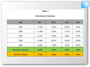 En el desarrollo de este trabajo mostramos algunas ideas acerca de la utilidad que puede tener la información básica sobre rendimientos y riesgo. Consideramos que puede ser un buen comienzo para el análisis y seguimiento sistemático del desempeño de los fondos de inversión de renta variable, los cuales, como sabemos, son portafolios compuestos por activos y un conjunto de activos con riesgo.