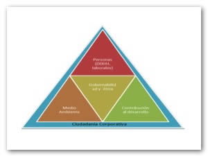 El siguiente diagrama propuesto por World Economic Forum, de forma gráfica resume las que pueden considerarse como las áreas principales de la Ciudadanía Corporativa o RSC, aclarando que su precisión es una cuestión de diálogo y negociación con los diferentes stakeholders[3].