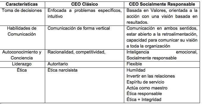 Desde esta perspectiva es importante hacer una comparación del CEO Clásico contra el CEO Socialmente Responsable para tener una panorámica de su evolución.