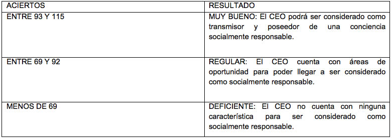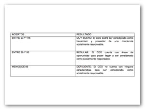 Se han analizado y resumido las características de un CEO socialmente responsable pero ¿Cómo saber si se cuenta con alguna de ellas? Para responder esta pregunta se hace una propuesta de un instrumento basado en una serie de cuestionamientos que permitirá conocer las cualidades con las que cuenta el CEO, las que hay que reforzar y las que hacen falta para ser responsable socialmente.