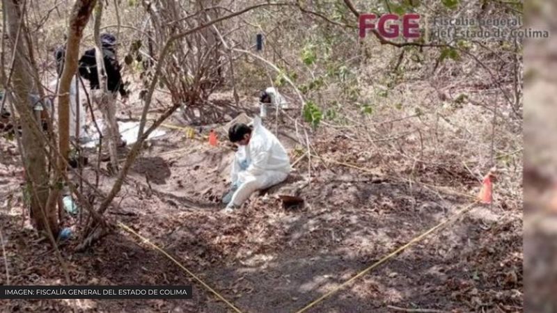 Los restos humanos fueron localizados con el apoyo de drones y de perros en la comunidad de Cerro de Ortega, en el municipio de Tecomán, donde han sido identificados numerosos entierros clandestinos desde 2018.