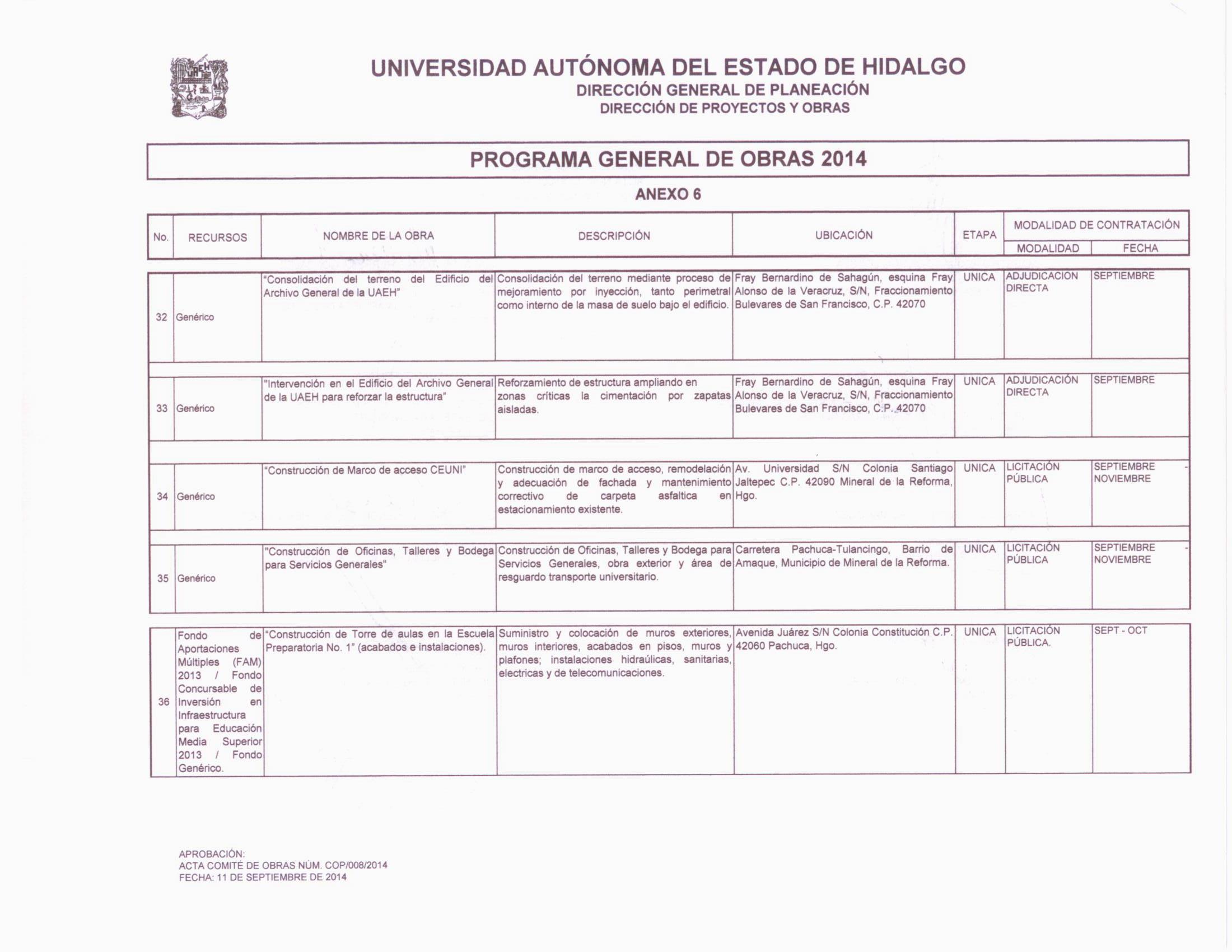 Programa General de Obra (PGO) Ejercicio Fiscal 2014